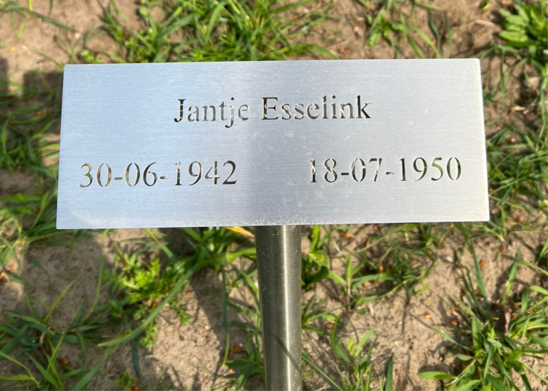 Het plaatsen van een roestvrijstalen bord is ook nog mogelijk nadat de gedenkboom is geplant. Uiteraard is een bordje plaatsen niet verplicht. Een bordje qua formaat ziet er uit zoals op onderstaande foto.
